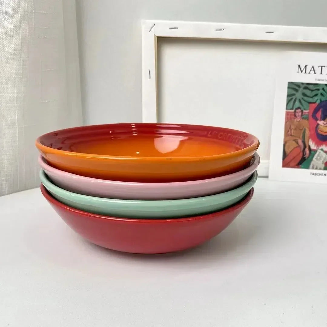 1 Pack Ceramic Dinner Plate,7 inches Porcelain Soup Bowl,Dessert Salad Food Dish,Kitchen Serving Tray,Colorful Deep Tableware