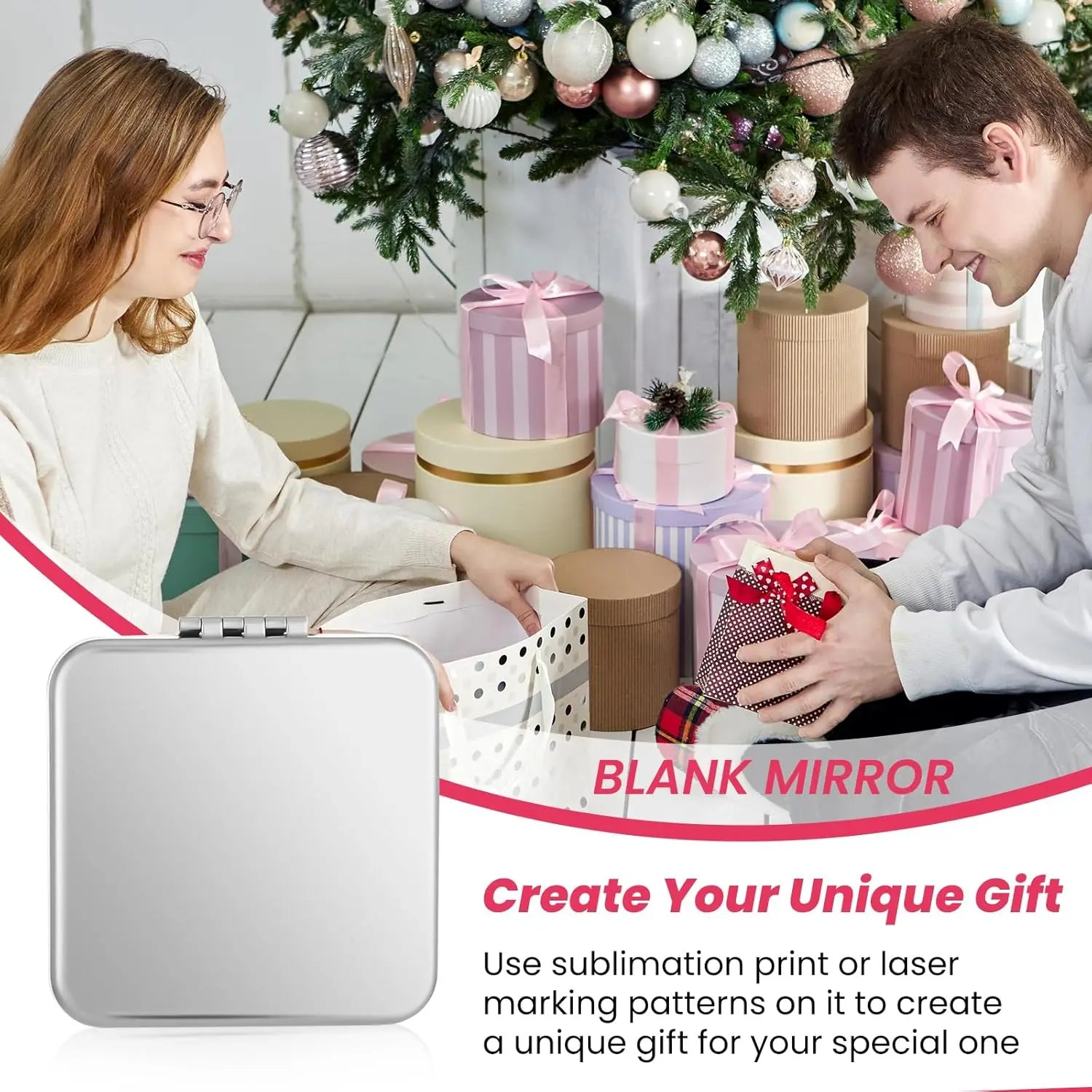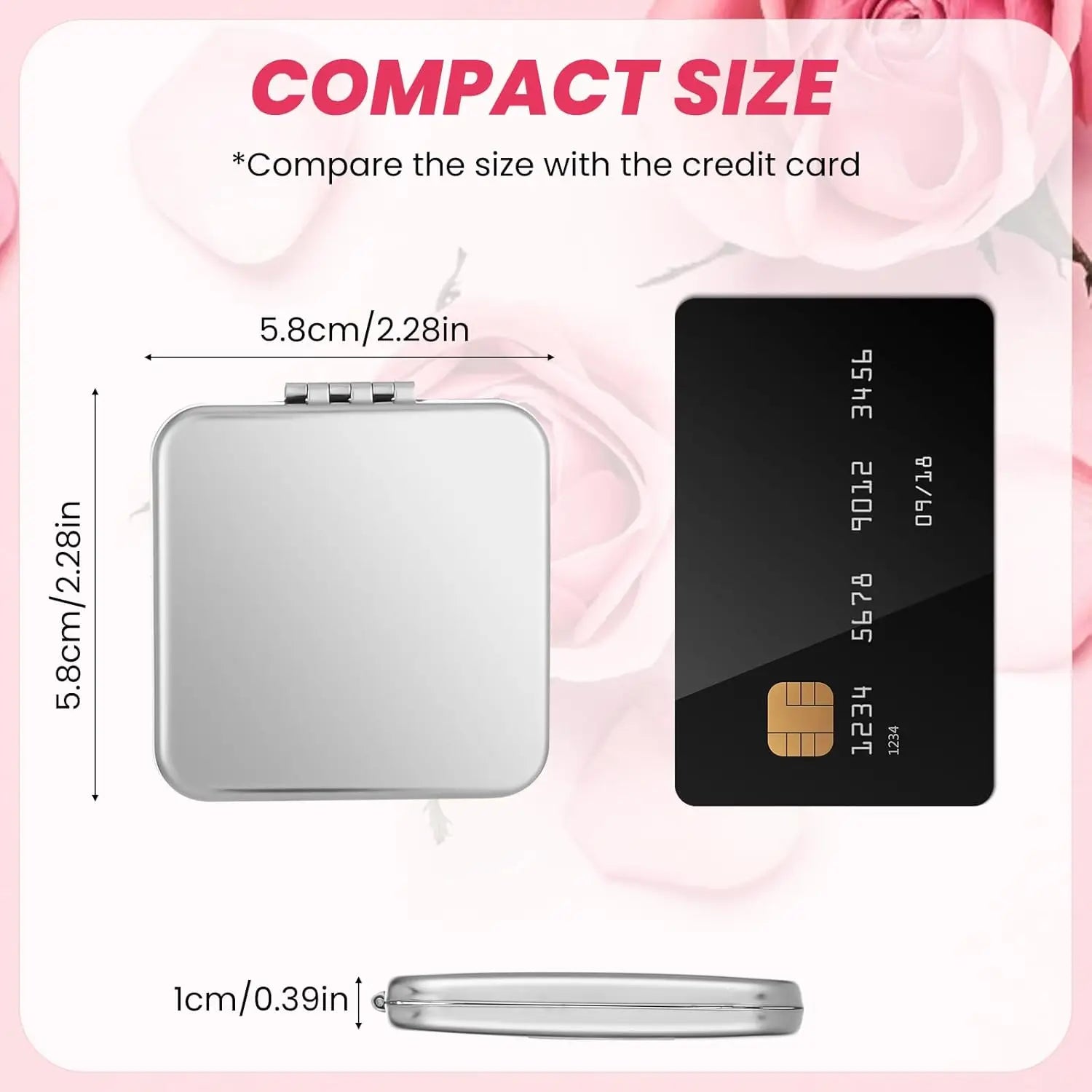 1pc Portable Stainless Steel Makeup Mirror Handheld Pocket Folding Cosmetic Make Up Mirror Double-Sided Elegant for Woman Purse