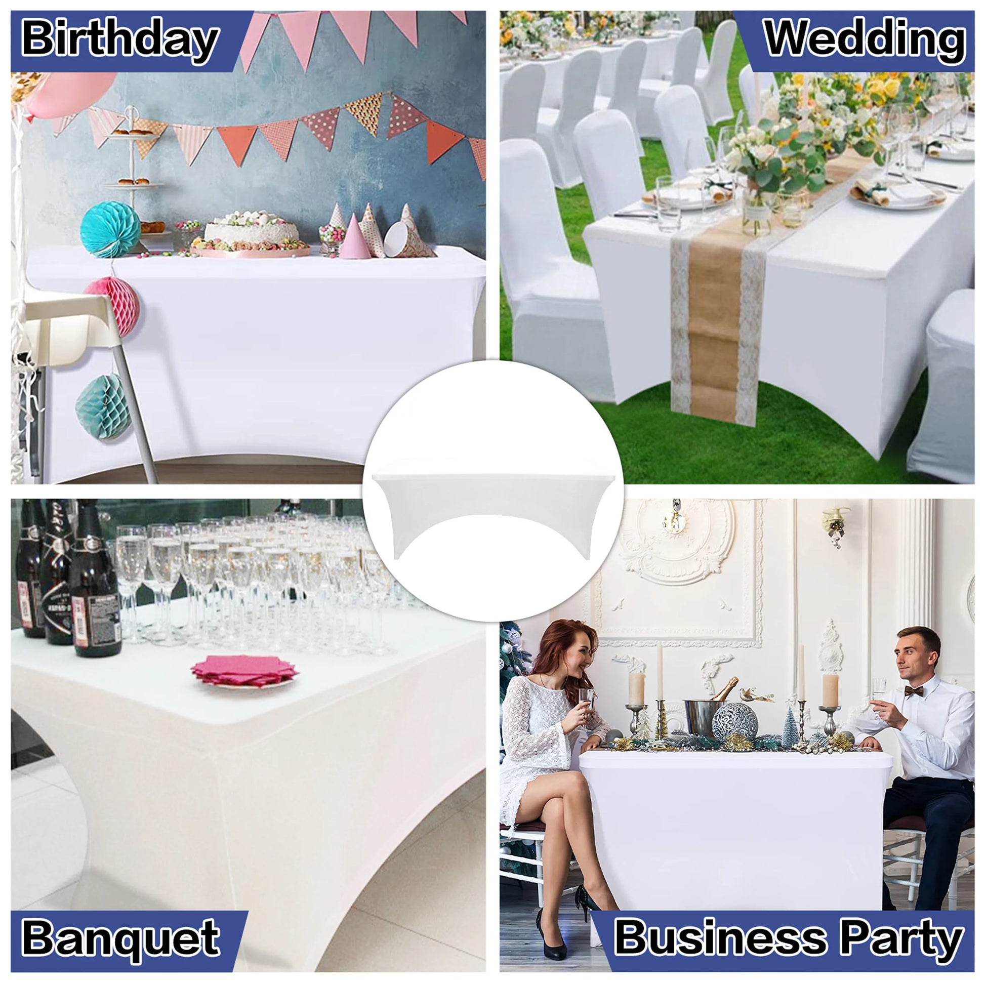 4/6FT White/Black High Stretch Tablecloth Wedding Party Beauty Massage Elastic Hotel Birthday Cover Rectangular Table Cloth