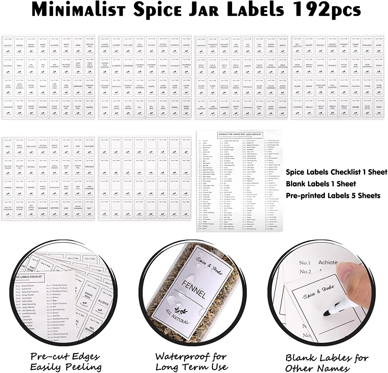 6pcs/set Kitchen Food Stickers Waterproof Food Spice Jar Label Seasoning Jar Sticker white