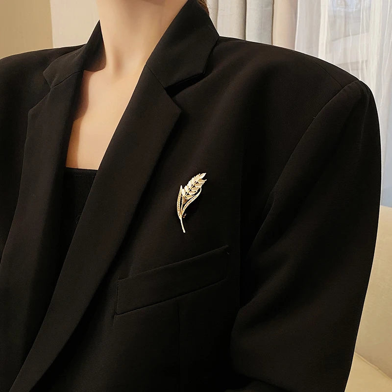 Exquisite Opal Wheat Ear Rhinestone Brooches for Women Crystal Cat’s Eye Stone Pins Suit Clothes Luxury Jewelry Accessories