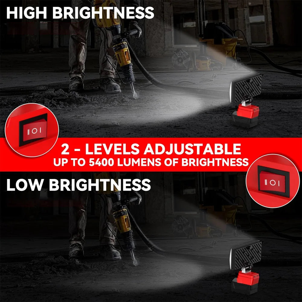 【BATTERY POWERED】LED work ligh embracing the mobility and flexibility of cordless design, compatible for Milwaukee 18V 20V lithium-ion batteries. Ideal for places without easy access to power outlets, this light ensures flexibility and mobility for all your projects. Please note: Batteries are not included.