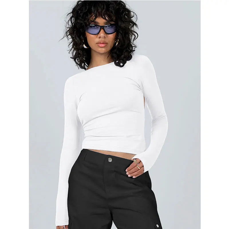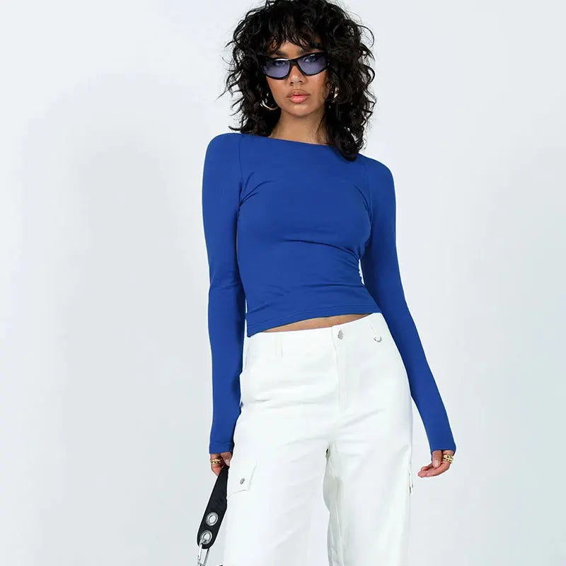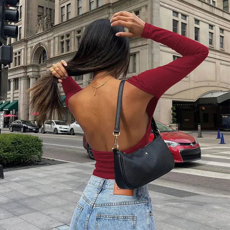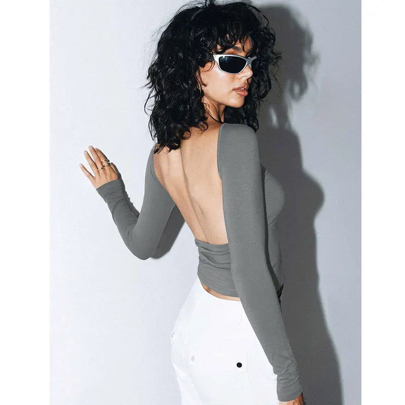 Long Sleeve Women's Red T Shirt 2023 Spring Autumn Slim Backless Streetwear Fashion Basic Baby Tees Gothic Y2k Clothes Crop Tops
