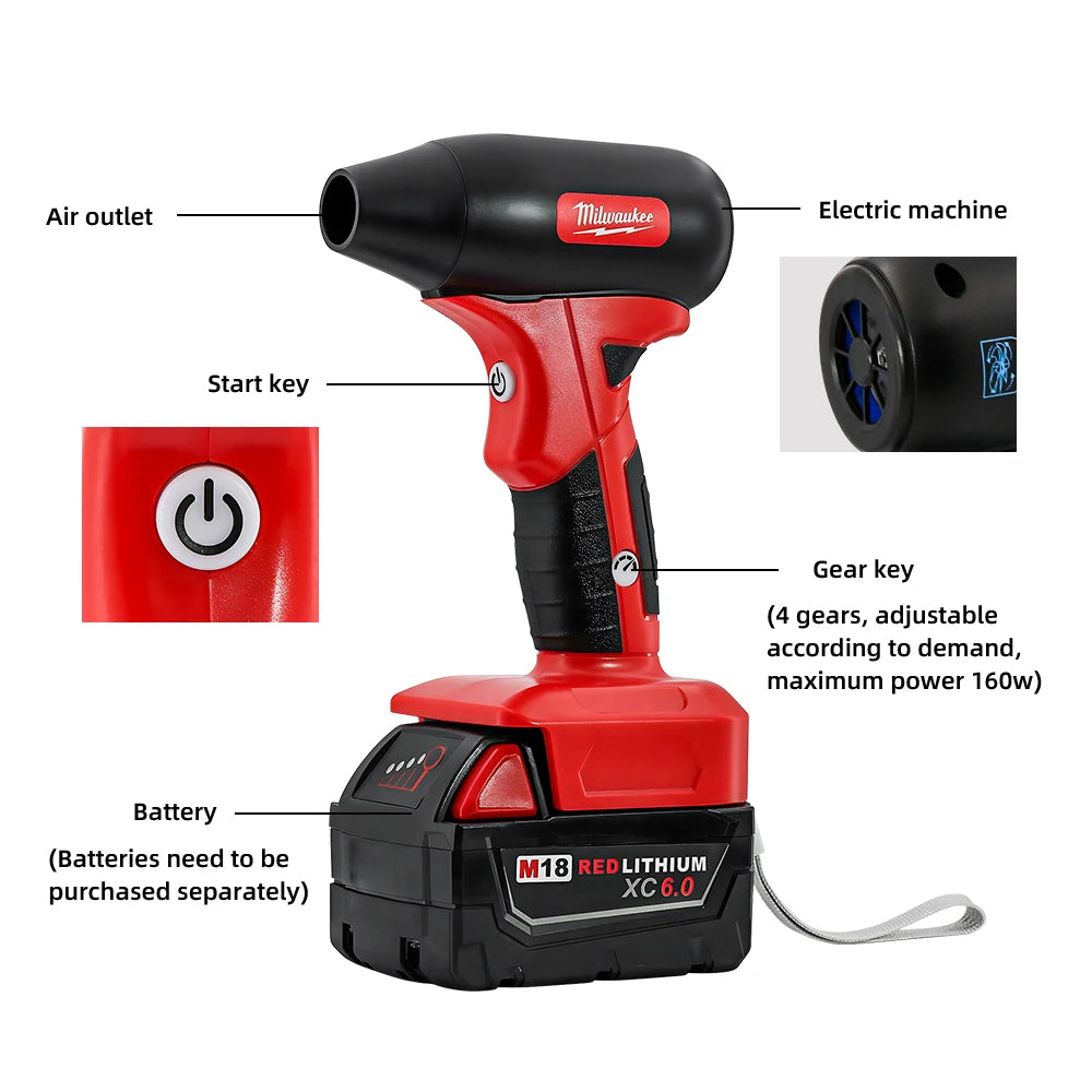 Milwaukee Brushless Electric Turbo Blowers Jet Fan 45M/S Violent 130000RPM Car Dryer Handheld Dust Blowing Tool For 18V Battery