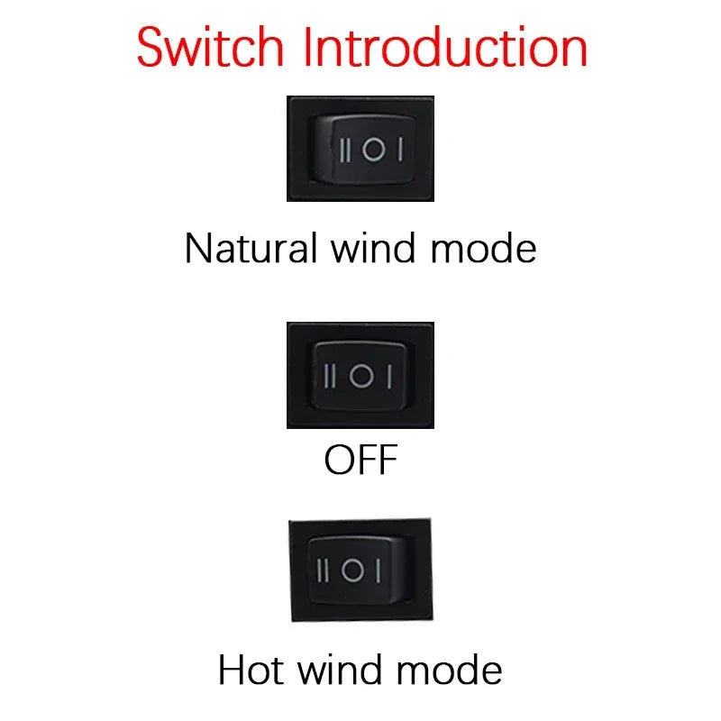 7. Warm air & Natural air switch with one click ( The switch functions are described as follows )