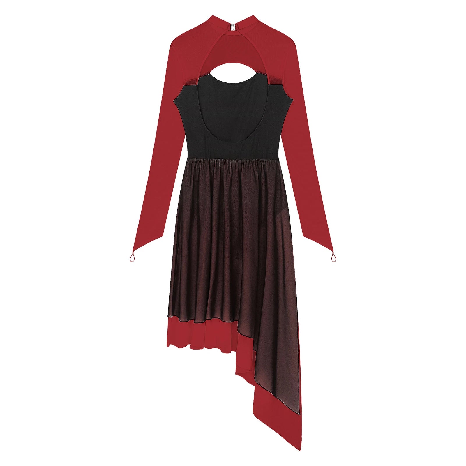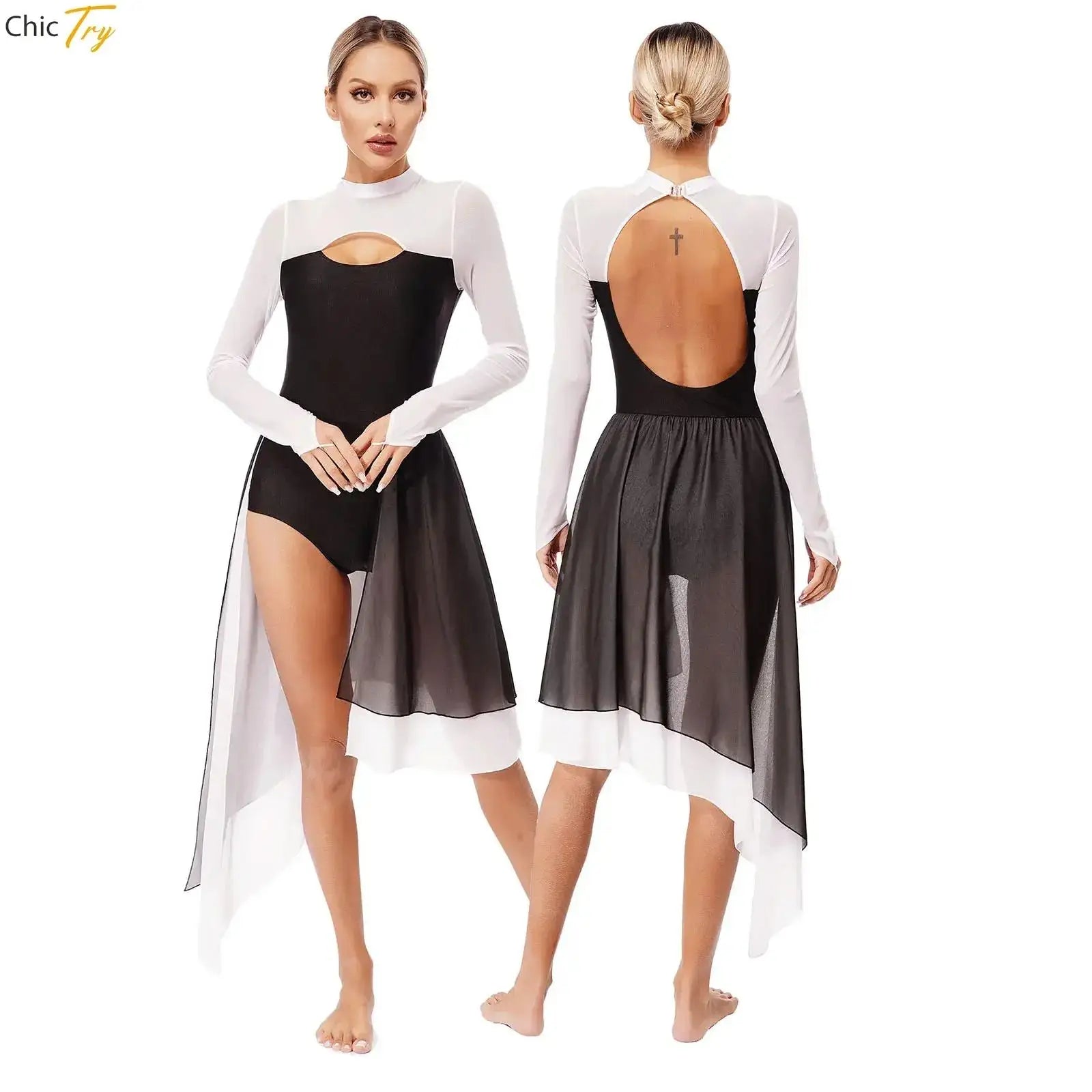 Cutout and backless make you look more charming. Sheer mesh long sleeve with finger holes, mock neck with a buckle for easy wearing.